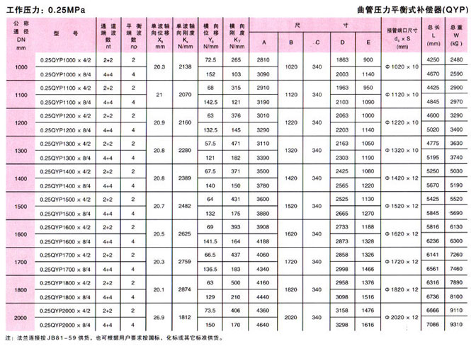 曲管壓力平衡式補償器(QYP)技術參數