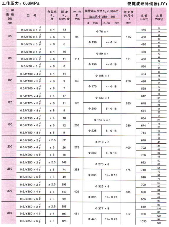 鉸鏈波紋補償器(JY)參數(shù)1