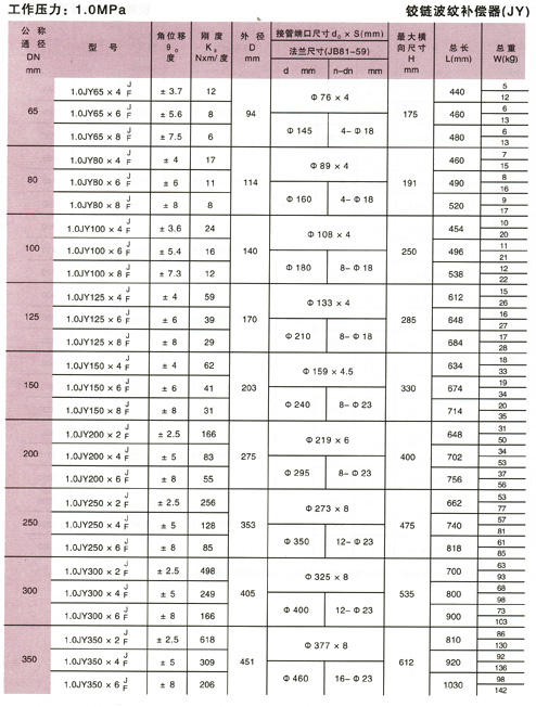 鉸鏈波紋補(bǔ)償器(JY)參數(shù)4