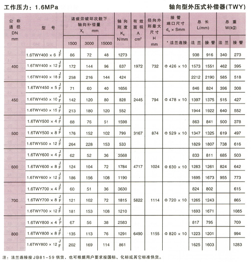 軸向型外壓式波紋補償器(TWY)參數6