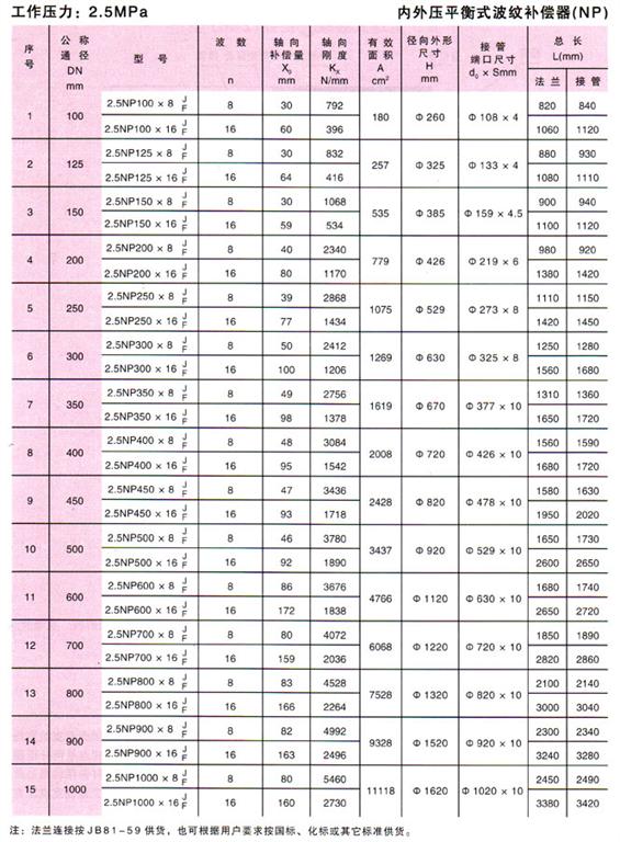 內(nèi)外壓力平衡式波紋補(bǔ)償器(NP)參數(shù)3