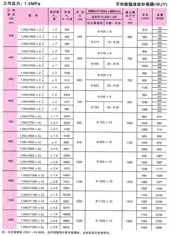 萬向鉸鏈波紋補償器(WJY)參數(shù)5