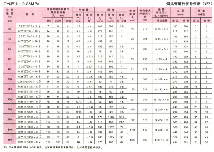 煙風管道波紋補償器產品參數1