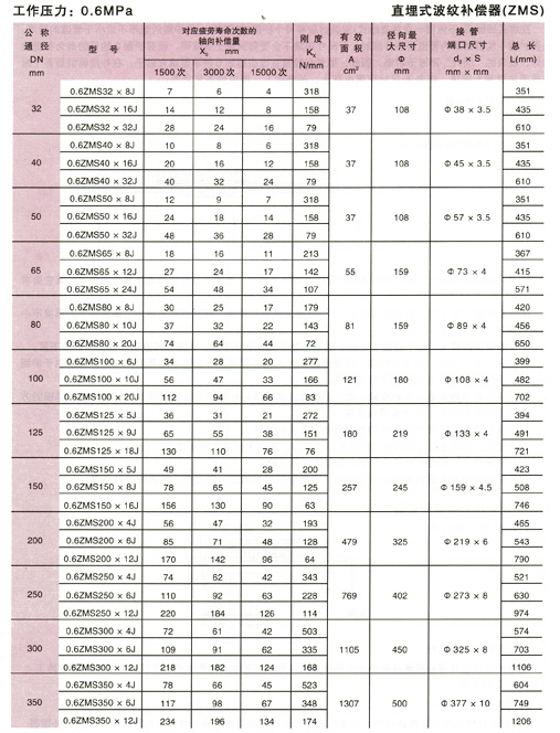 直埋式波紋補償器(ZMS型)參數1